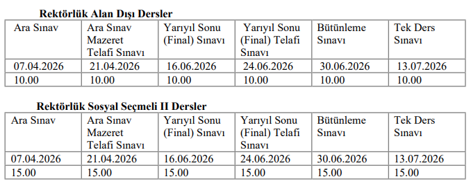 Rektörlük Sosyal Seçmeli II ve Alan Dışı Seçmeli Dersler Sınav Takvimi hakkında